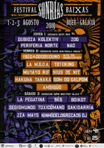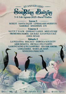 Se celebra en Bueu, en la Península del Morrazo, un paraíso atlántico ubicado en plenas Rías Baixas, donde se combina la naturaleza con las playas bañadas por el océano Atlántico y los encantos de un centro urbano único. En definitiva, una combinación de música, naturaleza, playa, gastronomía y acampada que convierten al SonRías Baixas en un festival idílico.